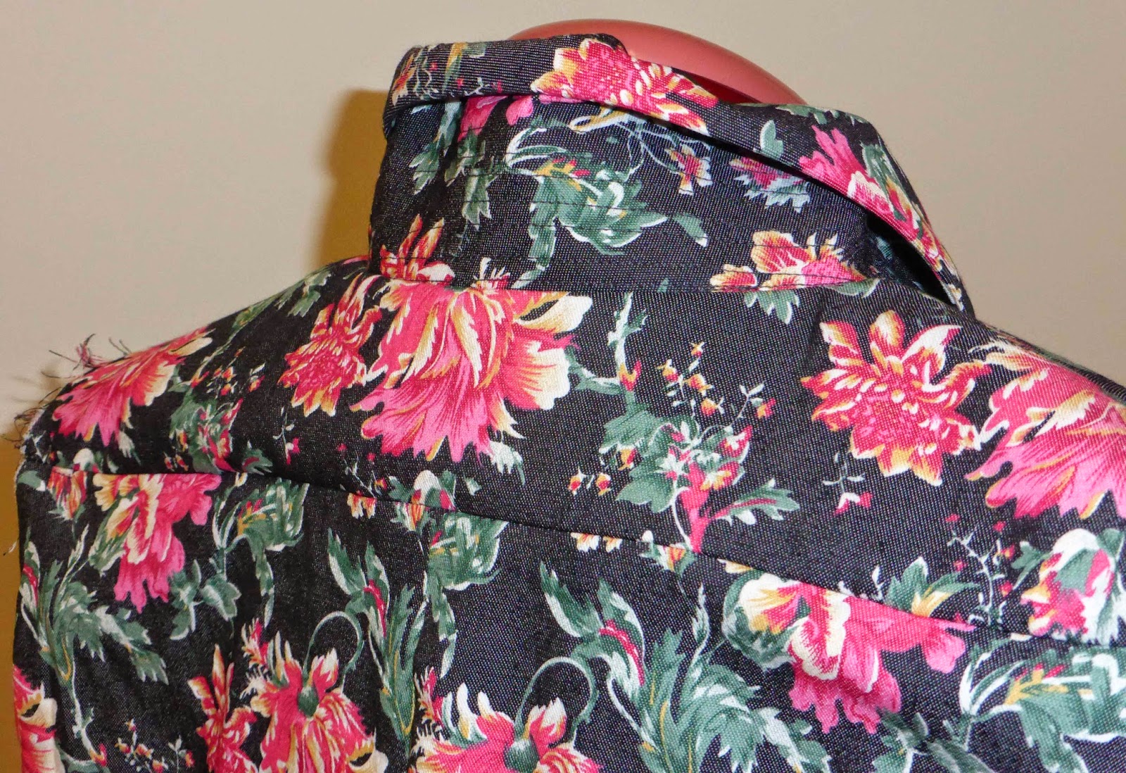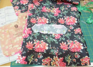 Then I cut the back yolk so the flowers were centered and balanced on my shoulders. I check my work as I sew.