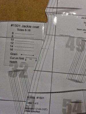 Jackie is a multi size pattern. This gives you the lines you need to grade your sizes. This gives you and easy way to grade your jacket to fit you – ‘grading 101’ if you like.