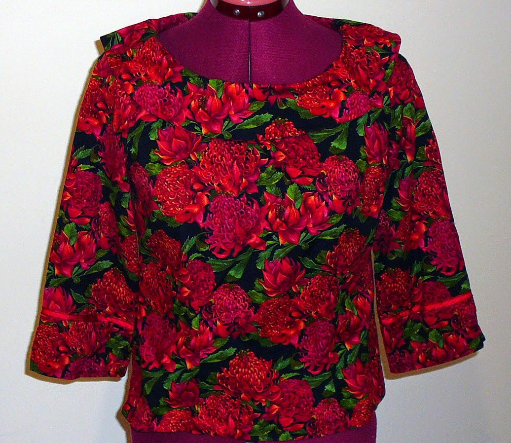 A waratah patternered fabric? how great! I do love the cut of this top, and the collar is very sweet – lovely work!