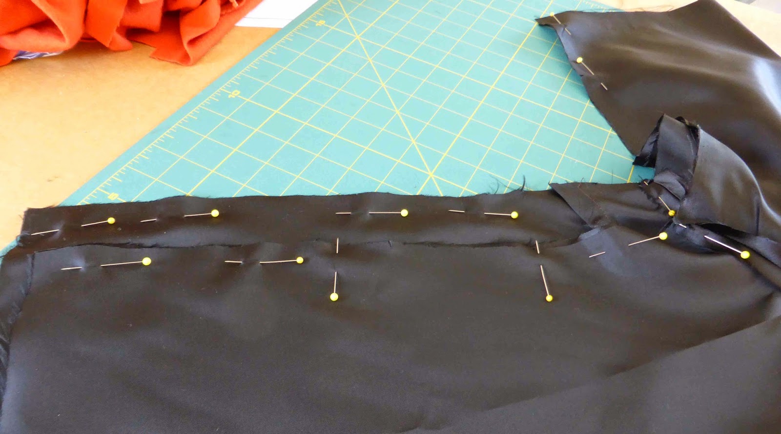 This black acetate is a medium weight fabric and will add to the coat weight. It’s lovely and smooth.