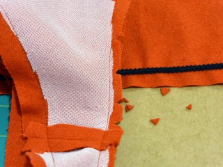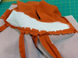 The back and front facings are sewn together. That’s looking clean enough.