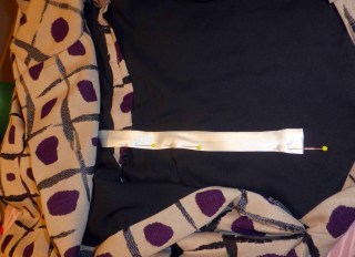 | Lining up the pattern on the collar facing. |