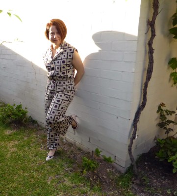 Look at you in your chic jumpsuit! Very cool fabric. You look great and it fits SO well!