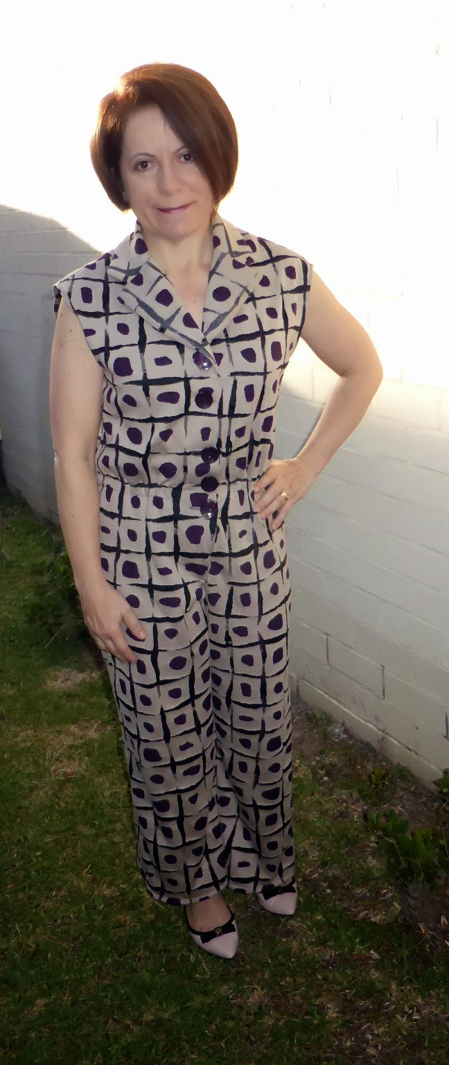 Look at you in your chic jumpsuit! Very cool fabric. You look great and it fits SO well!