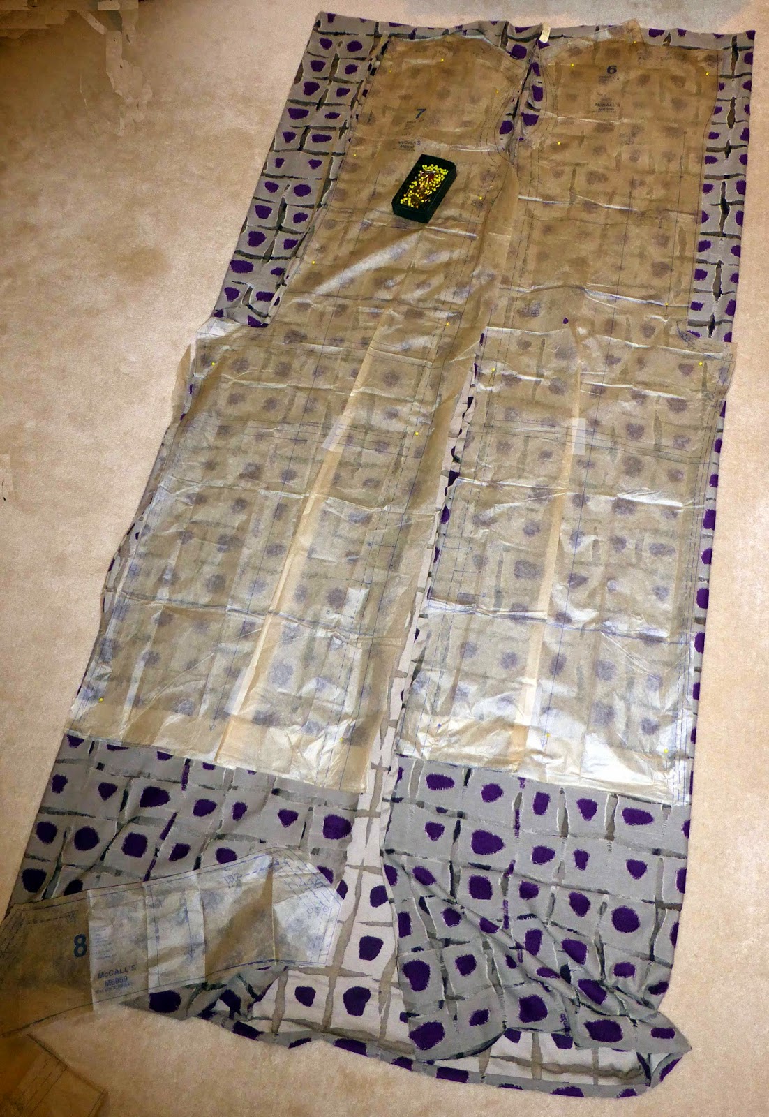 | Lining up the print on the jumpsuit body |