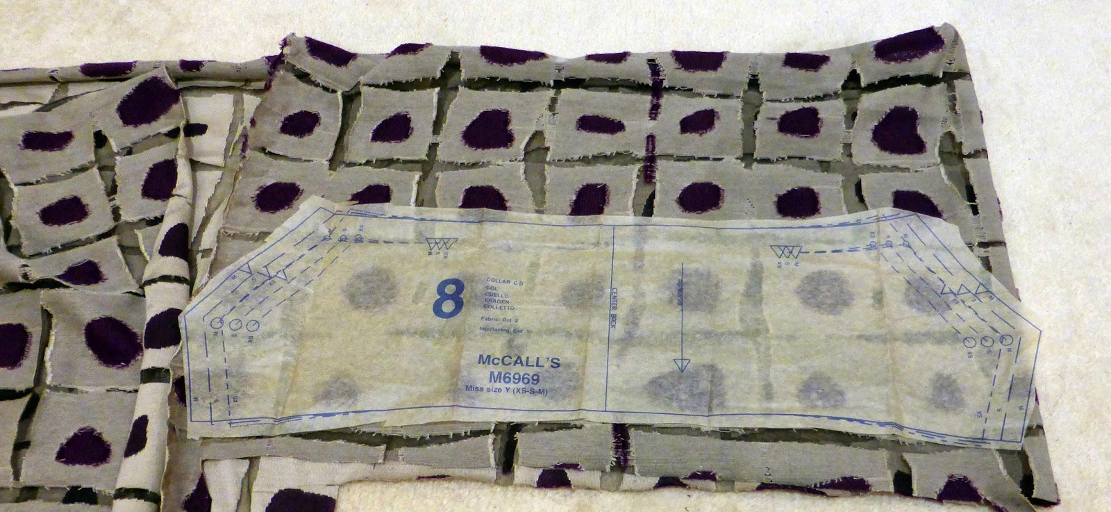 | Lining up the pattern on the collar facing. |