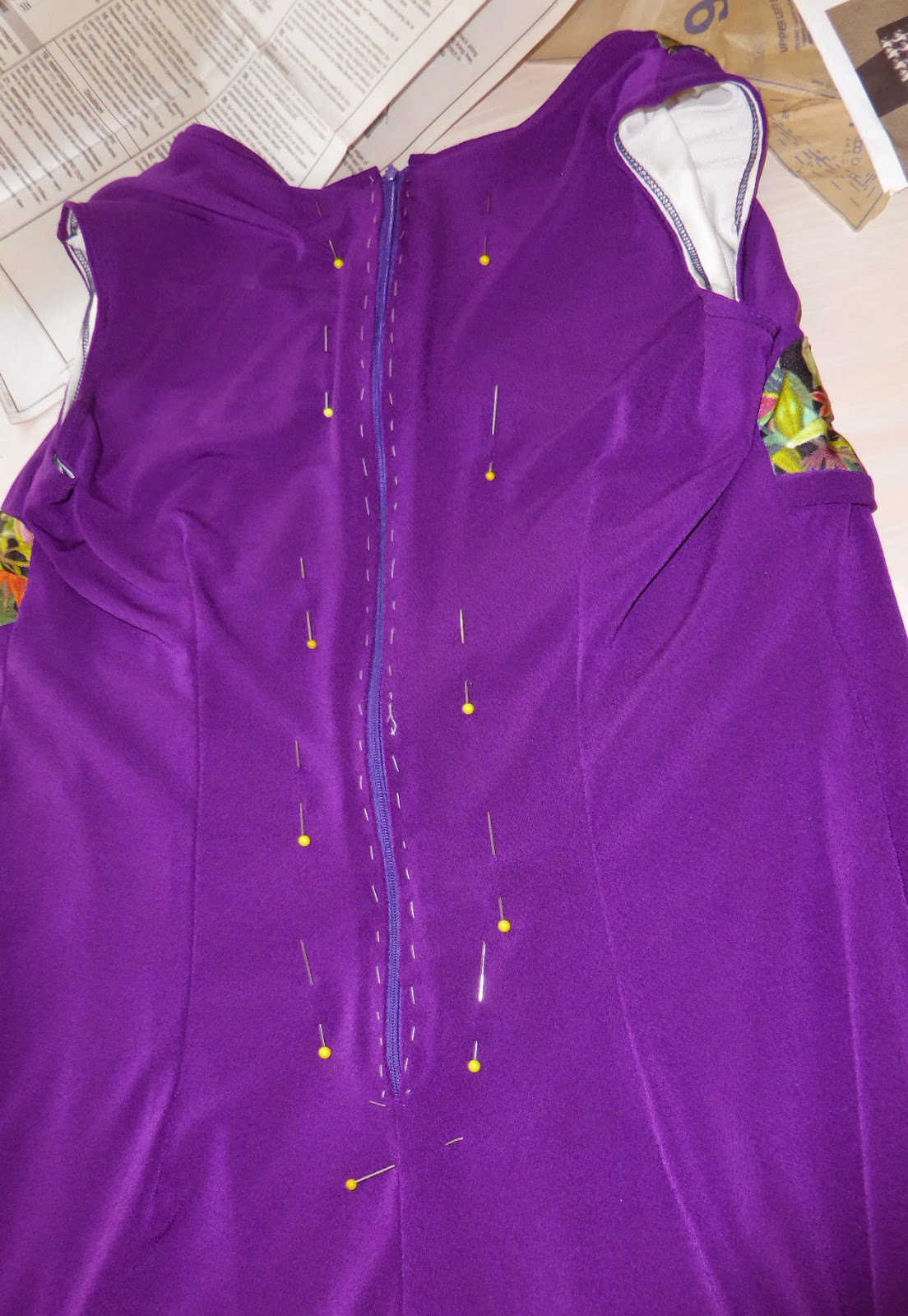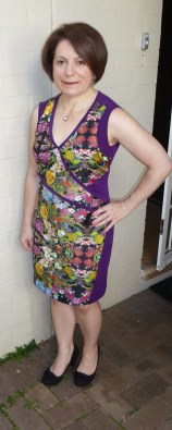 The problem with the test dress fabric was the purple fabric was very stretchy. There wasn’t much stability in it which is great but not so great when you sew in a zipper. Hence a bit of hand stitching. I could have made it without the zipper but I was testing the pattern – so the zipper stayed.