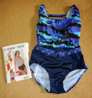 Using three Funki Fabric remnants, I decided to make an 80s throwback swimsuit using Kwik Sew 3064.