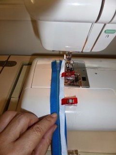 I used Clover wonder clips to hold the tape to the zipper tape.