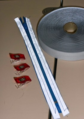 The reflective tape is woven and firm so I used the Clover wonder clips to hold the reflective tape onto the zipper for sewing.