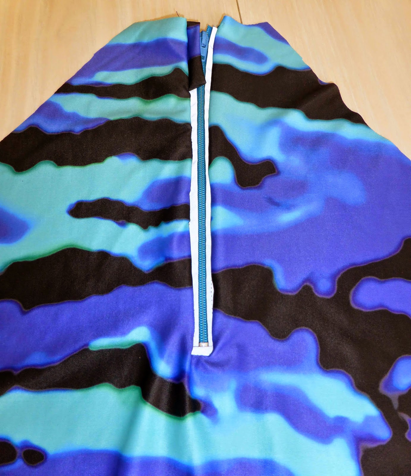 My guestimate was I would need 4m of reflective piping. Once I finished the new cycling jersey (using blue Stormset fabric) I had reflective piping left over so I was glad I only had to sew the piping once.