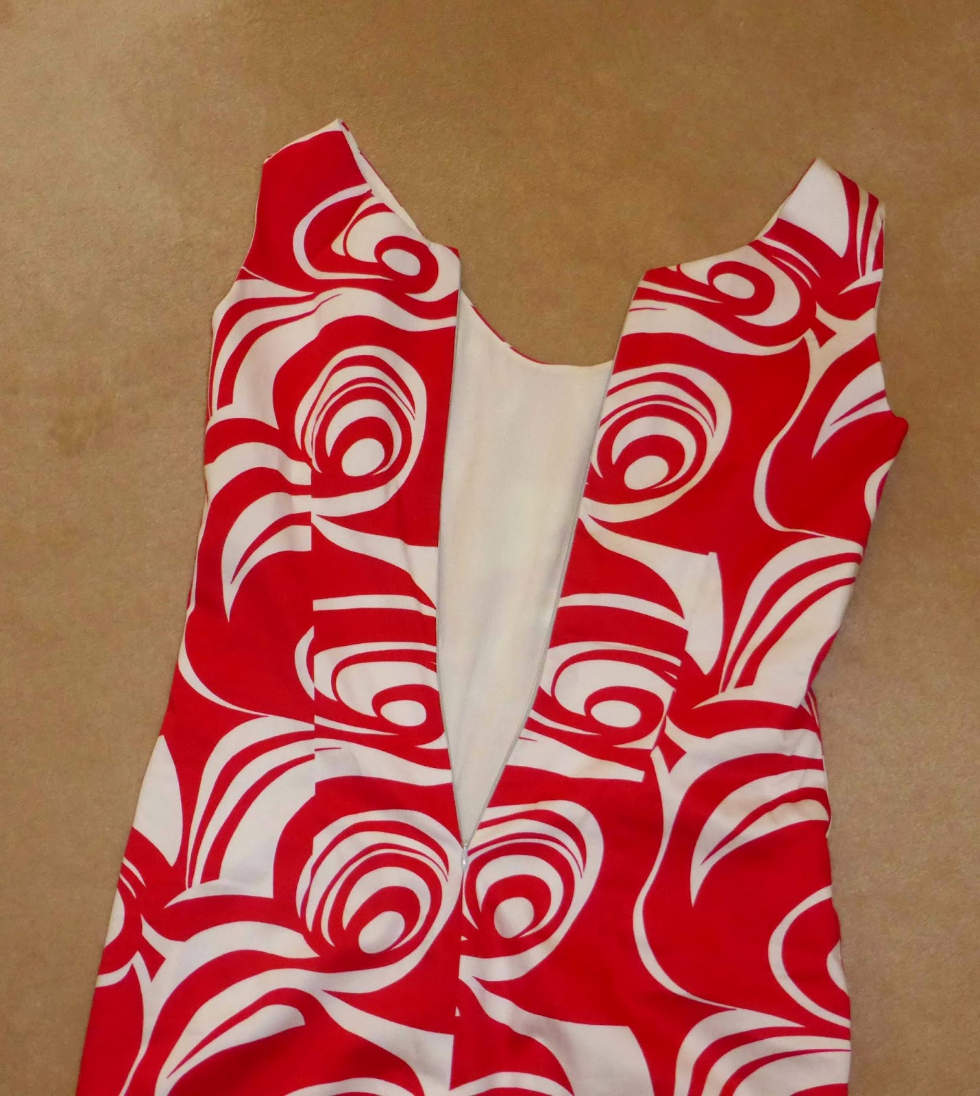 In my haste, I grabbed a grey invisible zip and dropped the back neckline so it would work. The swirls are placed dead centre so I have eyes on my back. That was intentional.