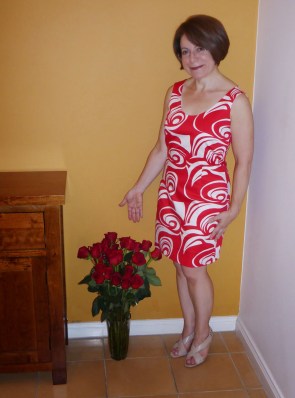Roses, lucky you! Your pattern reminded me very much of a dress I loved in my youth! Your red version looks lovely and is very Valentines worthy.
