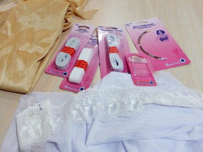 Now the flesh colour tricot fabric and underwire piping was from my stash. The bra hooks provided by White Tree Fabrics give you the convertible version (slider, o-ring and garter hook).