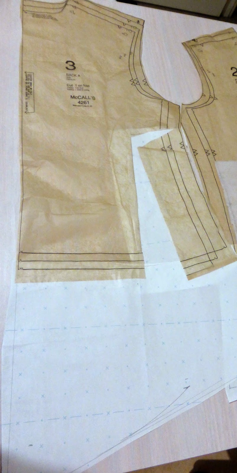 From the picture below you can see that I extended the jacket length and added width at the hem. This provides the added width so I could use the ribbon lacing at the back of the jacket.