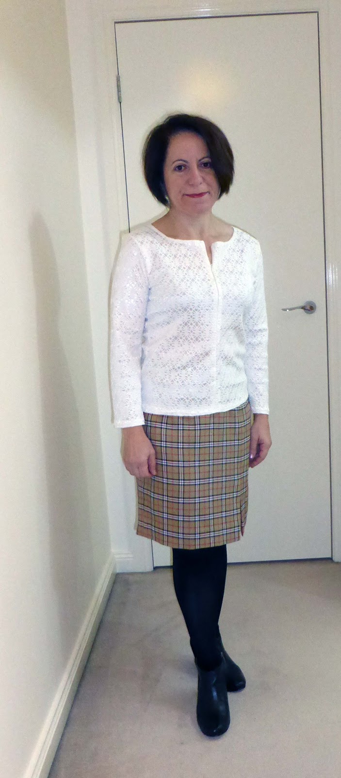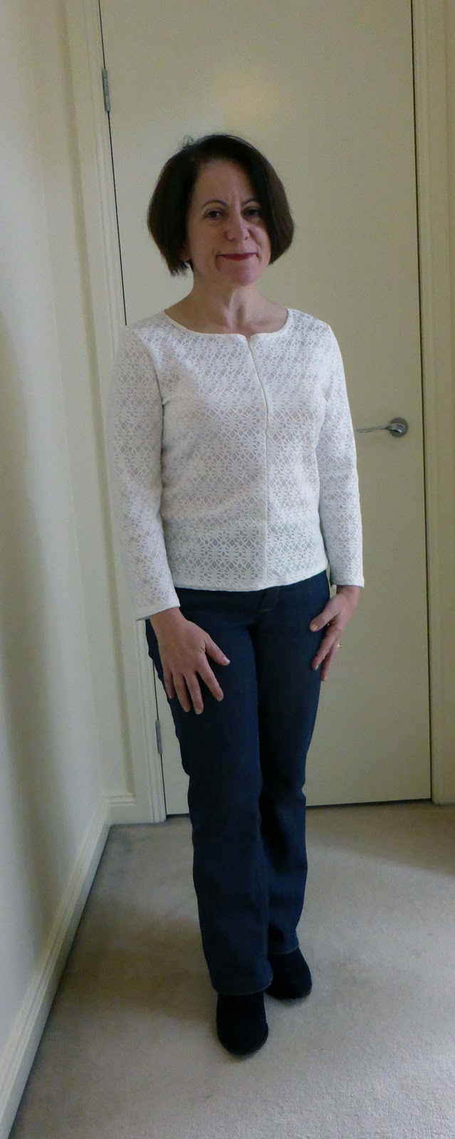 Love that cardigan Maria and that fabric is gorgeous. Winter white suits you. Very nice indeed.