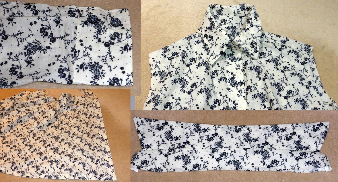 | Top Left clockwise: buttons on cuff; collar on shirt; two part collar; cutting front bodice |