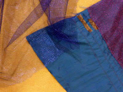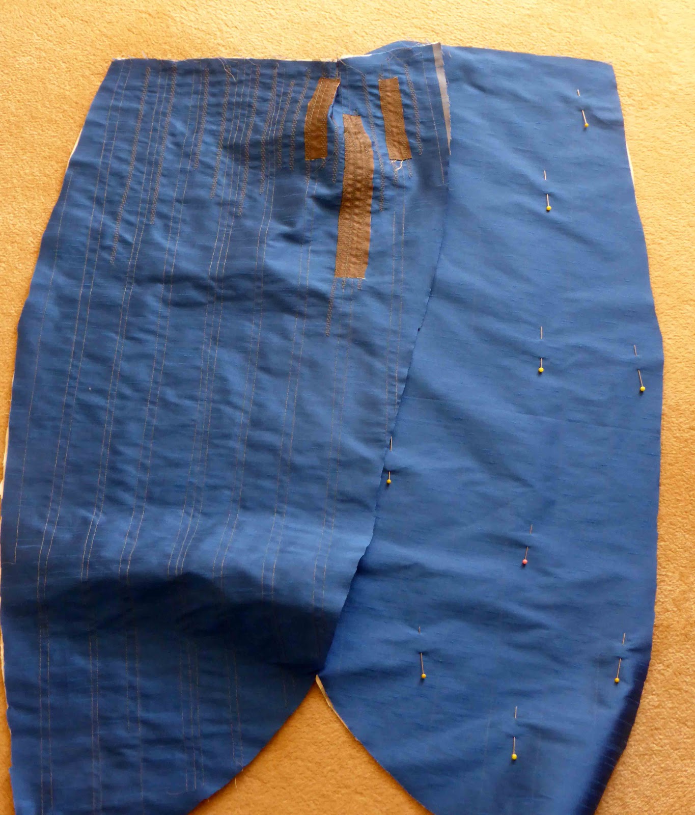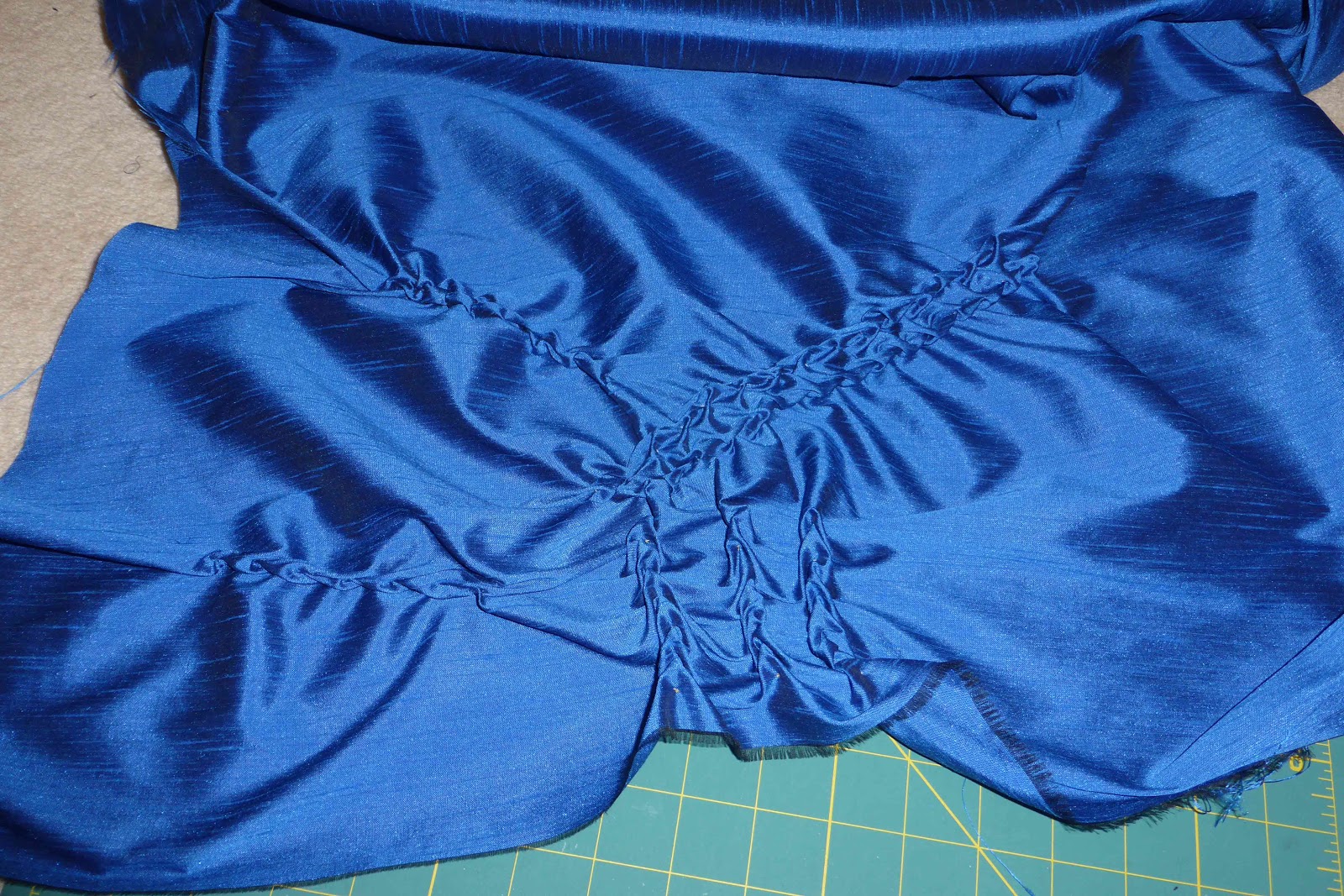 I ended up using the blue mesh fabric on the skirt over the quilting lines and fabric piecing.