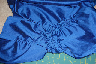 | The bodice then was sewing with rows of machine honey comb stitching using three different colour threads. |