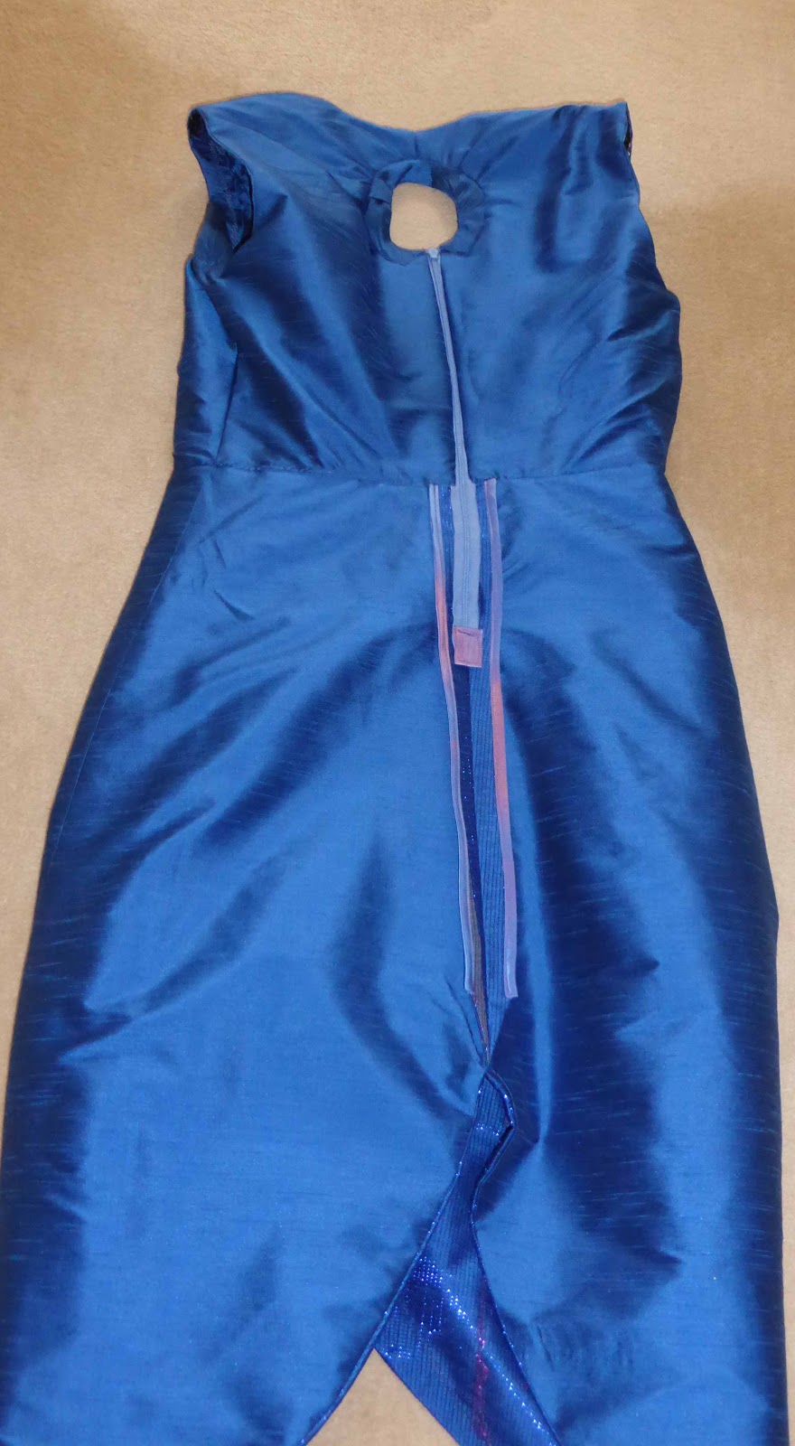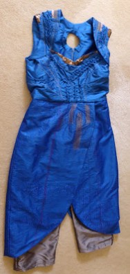 | The final bodice with sequin scales and pieces of the bronze trouser fabric for effect. |