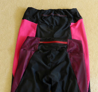 The beauty of Pacific leggings is you have 3 views you can ‘play’ with. In my case, the first pair (View A) used the plain waistband. The second version has the back zipper pocket and mesh and pink panels at the back.