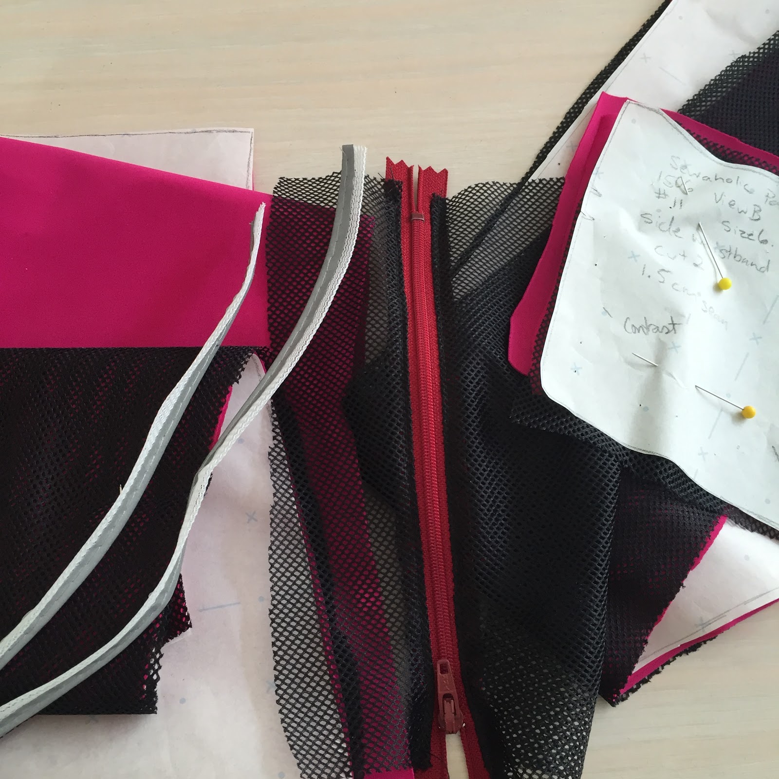 I chose black and pink plus two mesh fabrics for my ‘Valentine’s day collection’.