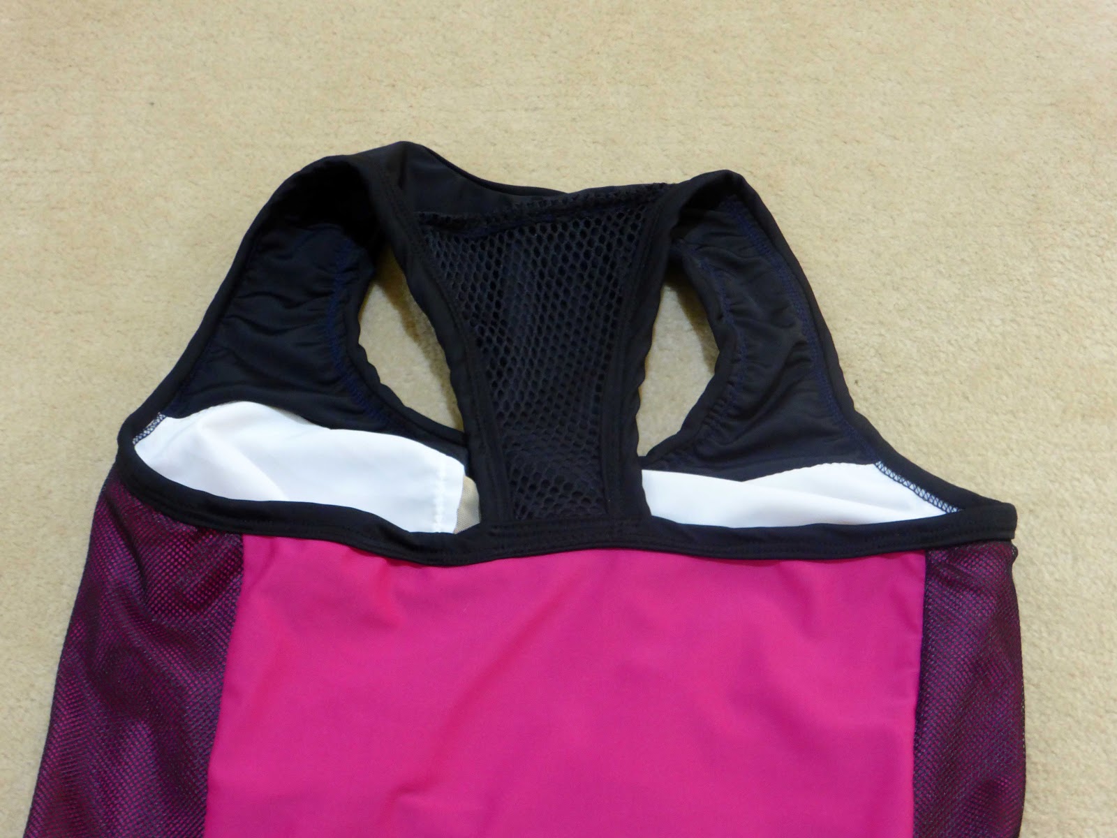 The fine mesh is quite strong but isn’t as stretchy as the lycra. The mesh on pink fabric can look like purple so that gives me more wear options.