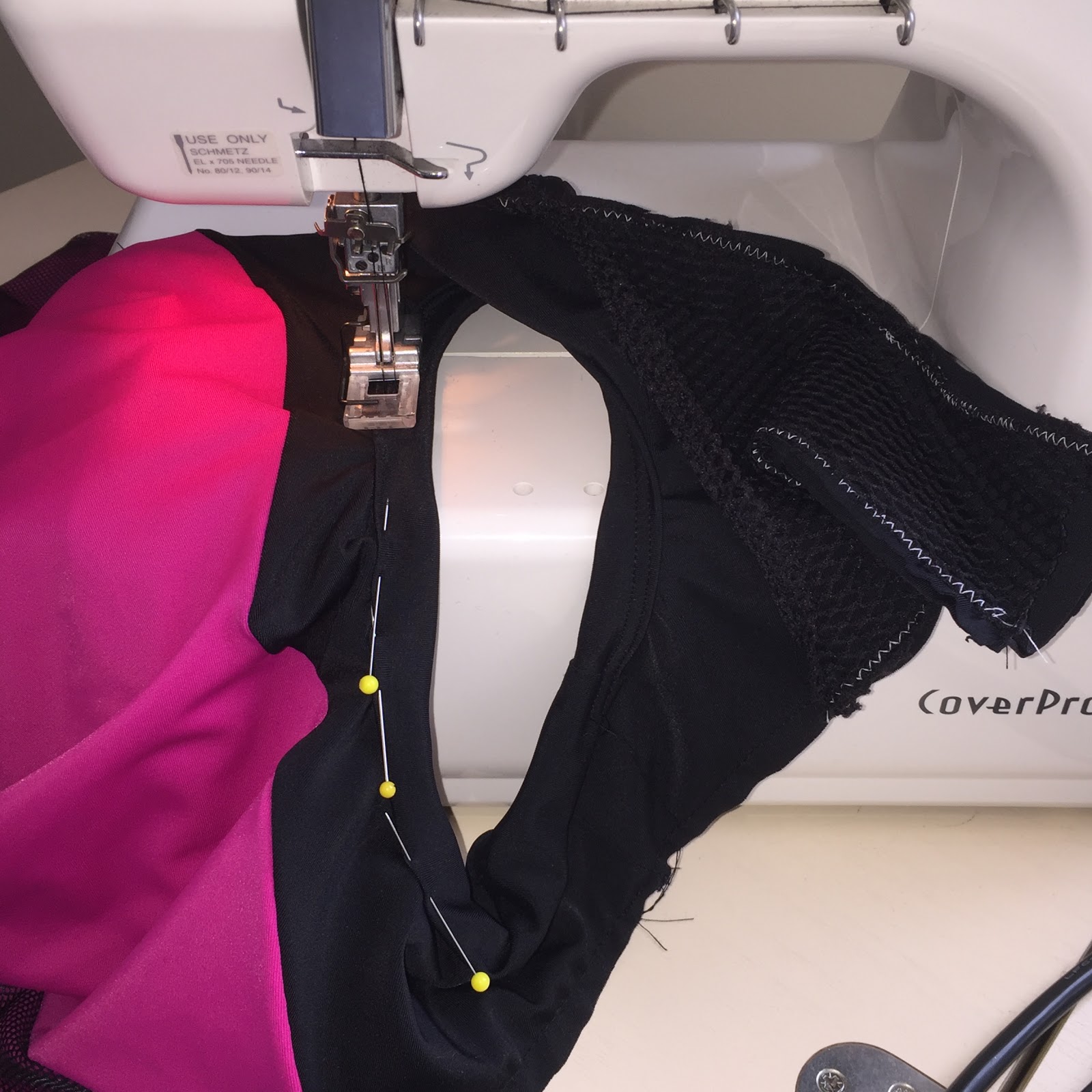 This pink black version has a cool but not functional pocket on the back using the larger black mesh White Tree Fabrics has. This pocket idea is one I’d seen before so I thought it would be fun trying.