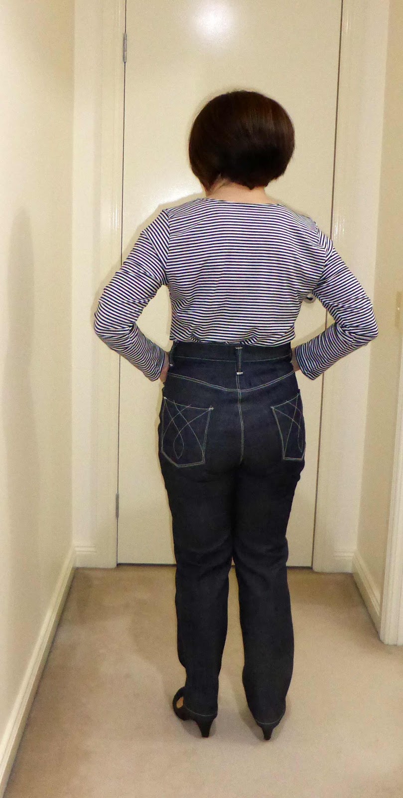 You guessed it. I’ve since taken 6cm out of the body of the jeans so the pattern matches my RTW mid-waist jeans. I still like this pattern because it’s the most RTW jeans pattern I’ve seen.