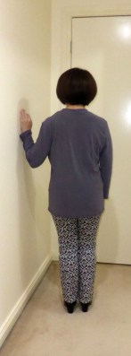 I then did a forward shoulder adjustment – raise the back shoulder seam and lower the front shoulder seam all at the shoulder point.