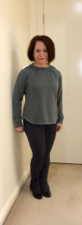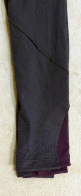 There wasn’t enough grey ponte so I chose a dark purple ponte and placed that at the back of the calve and as the lower leg facings.