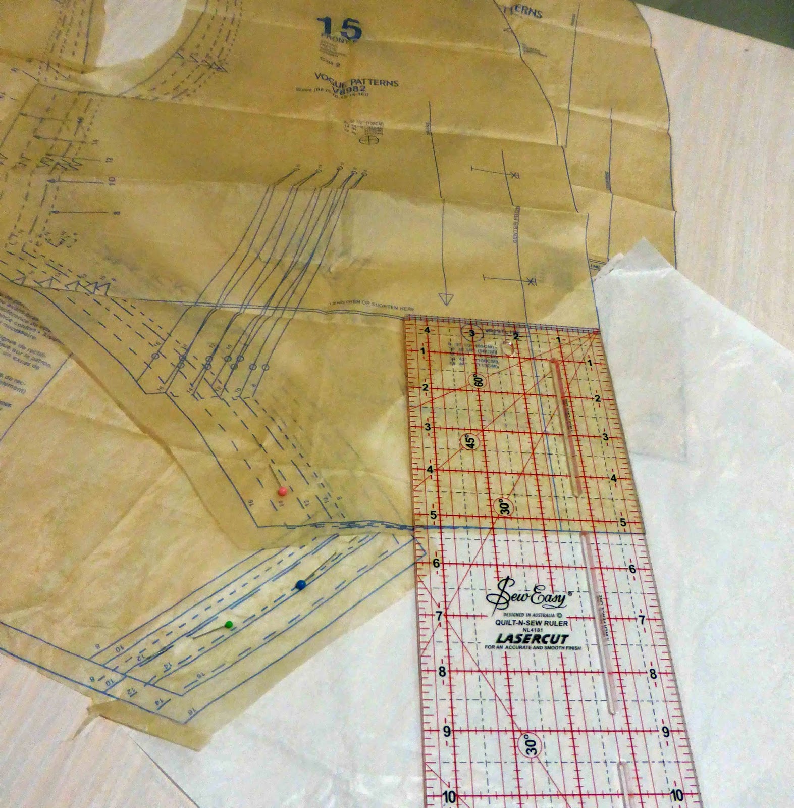 | This shows where I pinched the centre front seam to lower it without affecting the waistline shaping. |