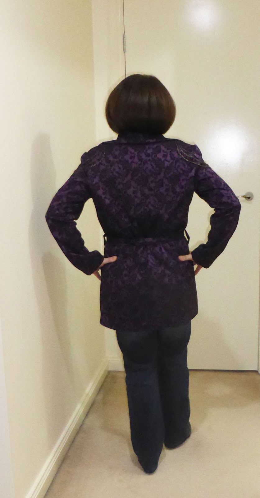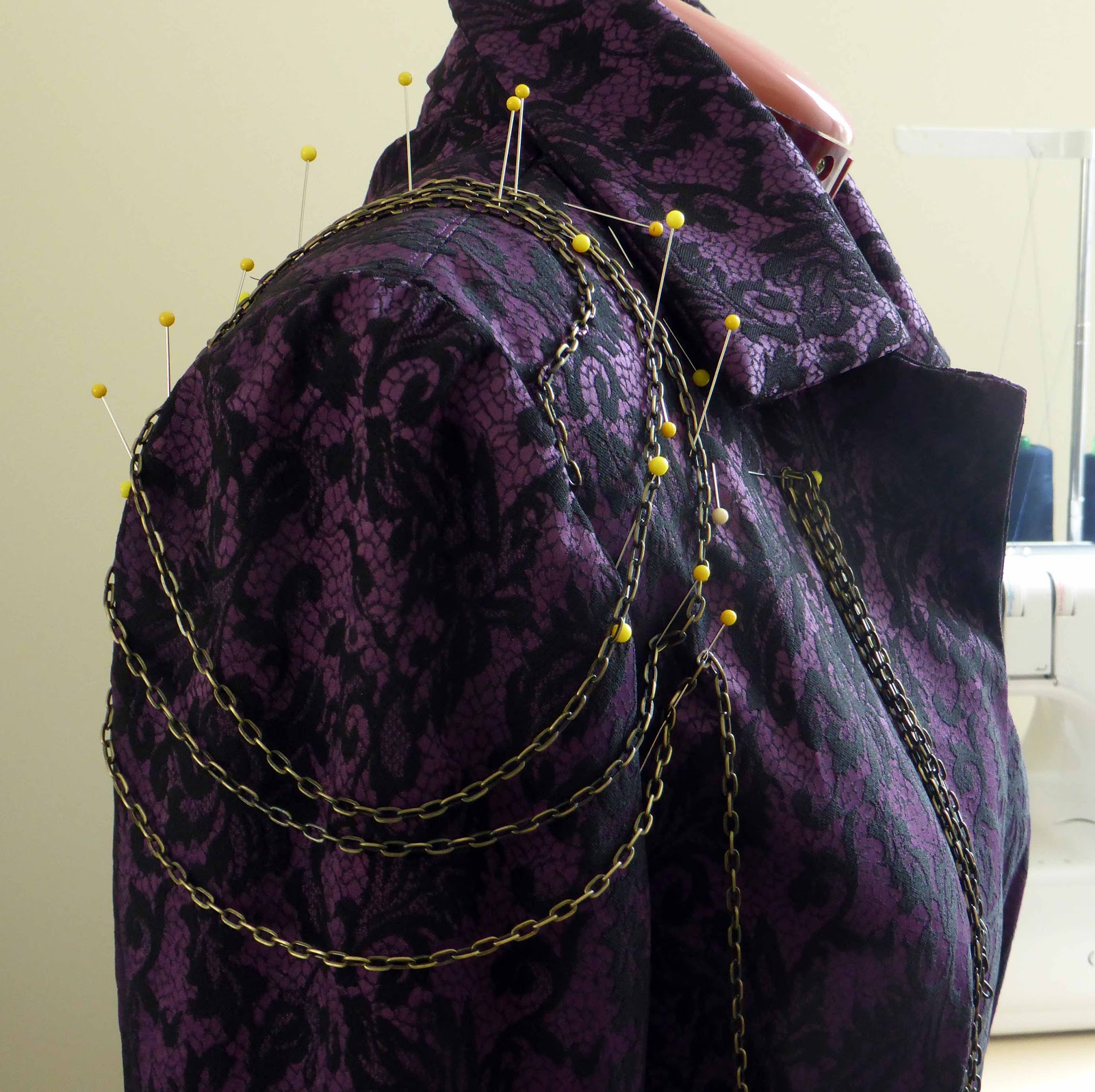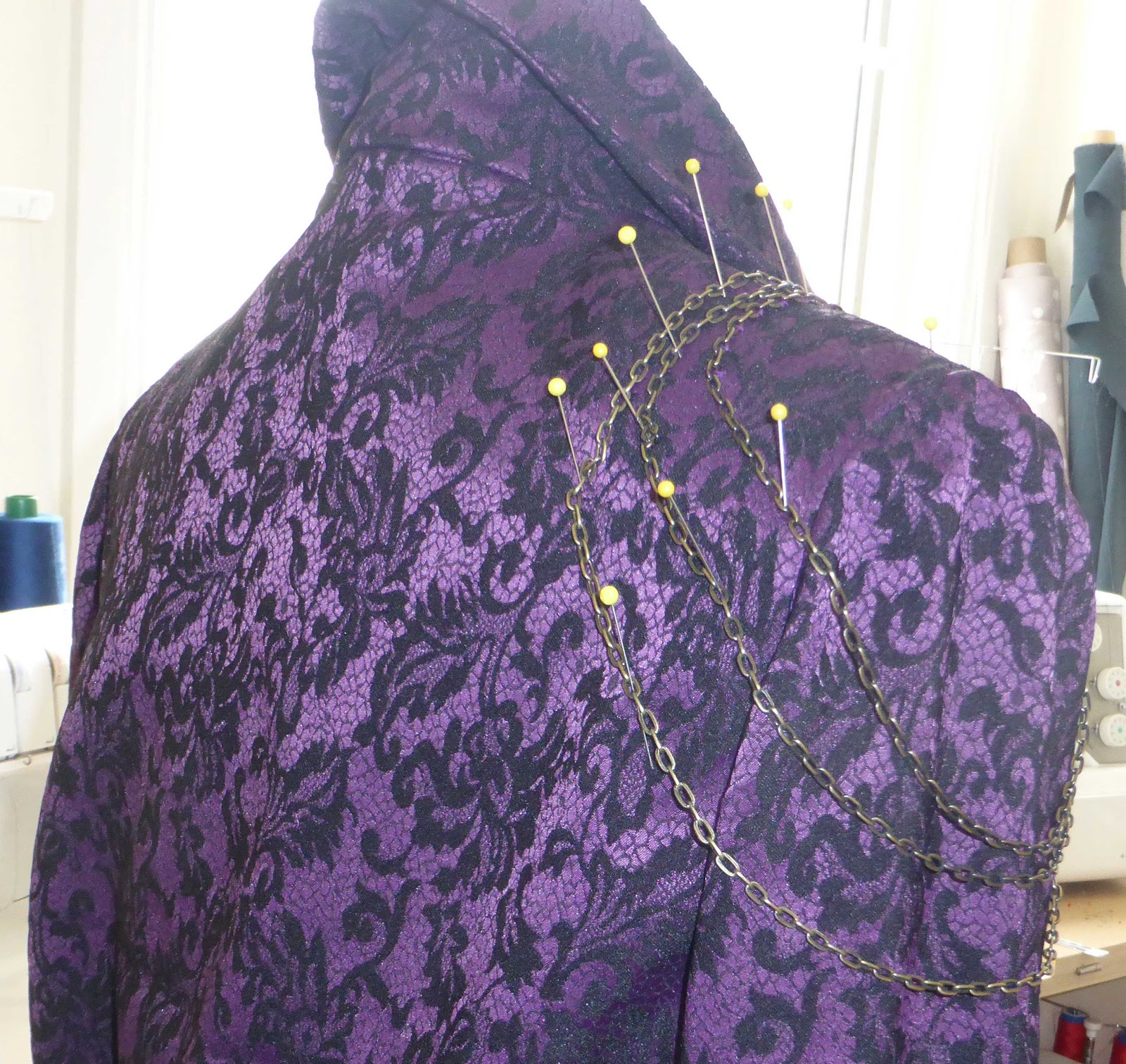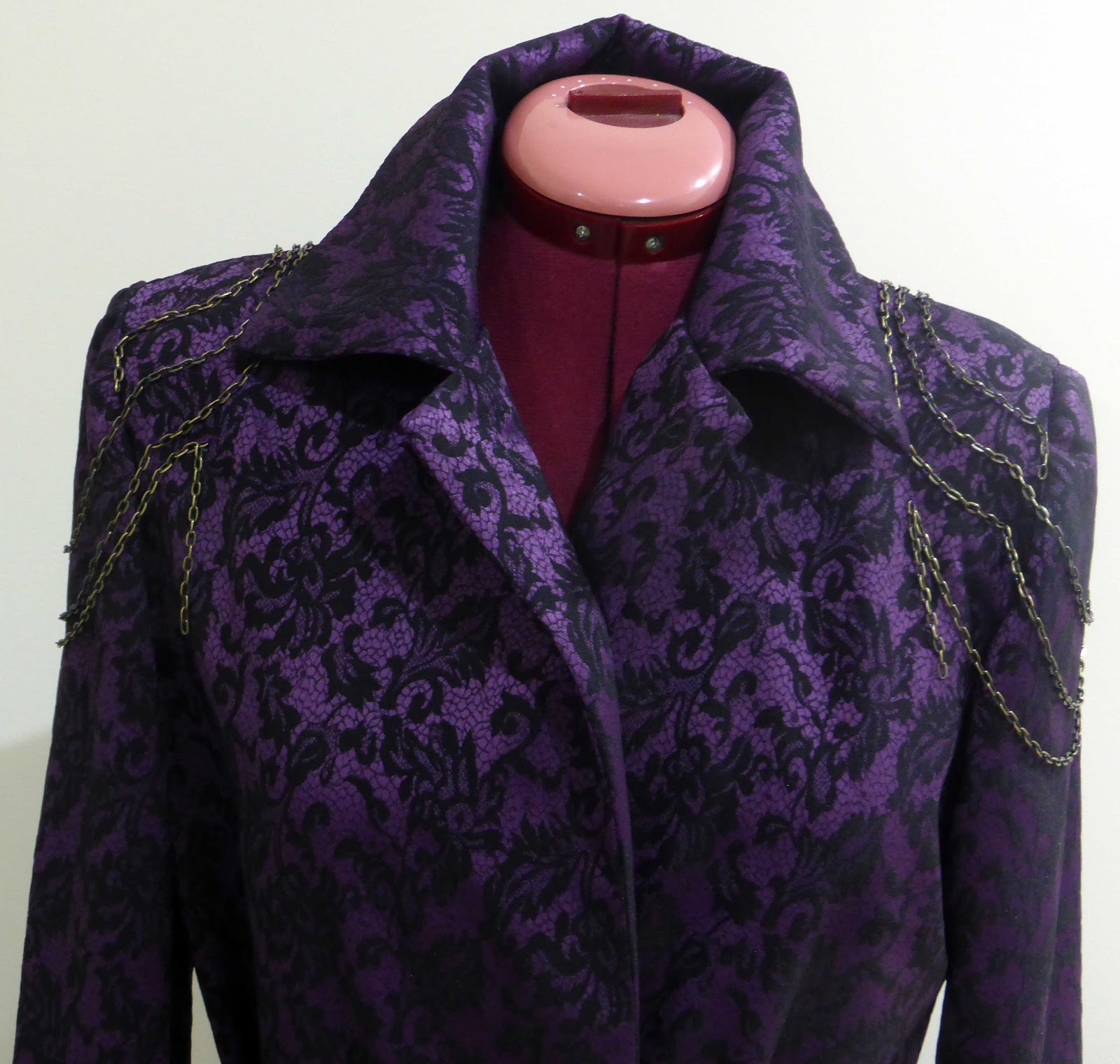 That’s why I made this wrap coat using chain detailing, New Look 6785 coat and dark purple brocade fabric.