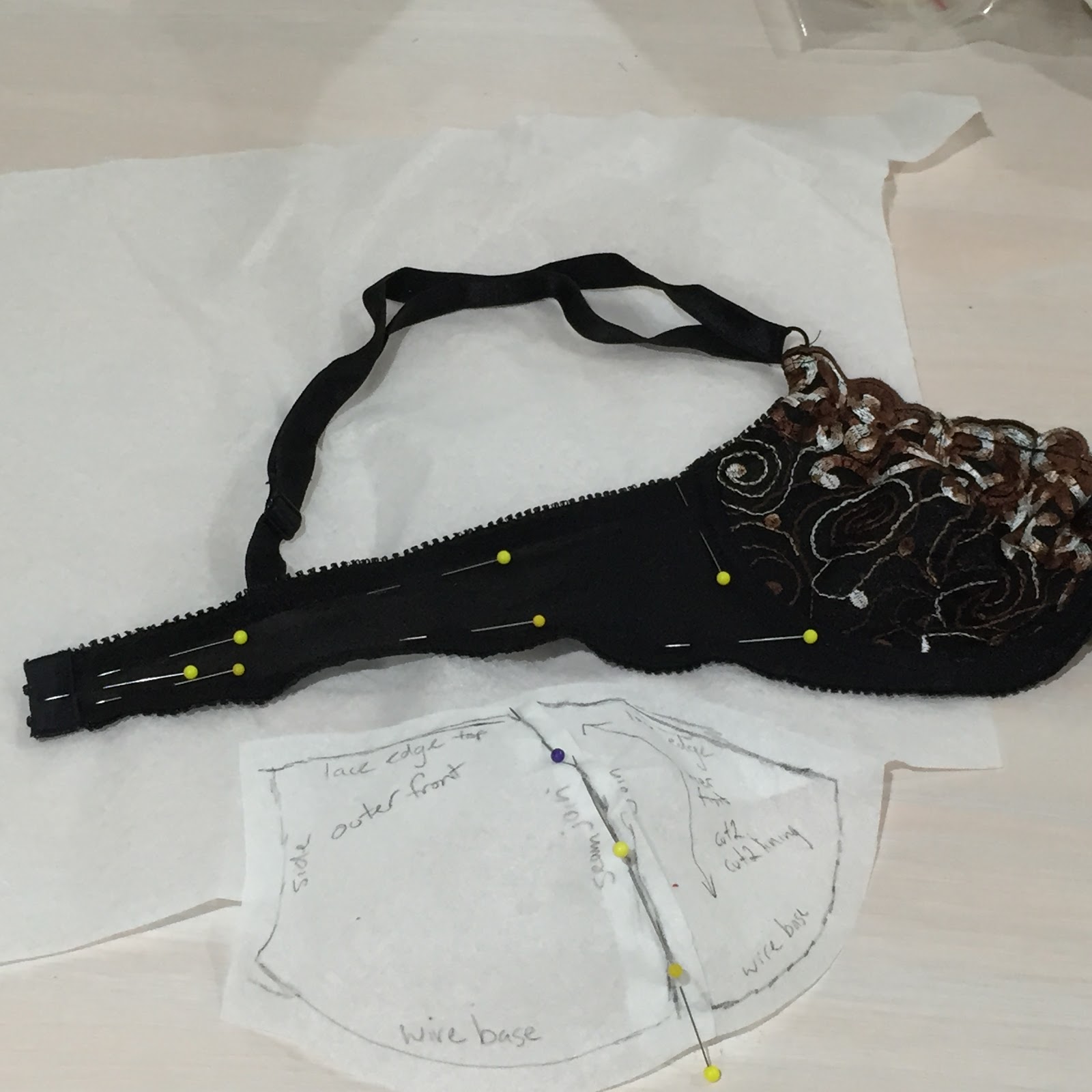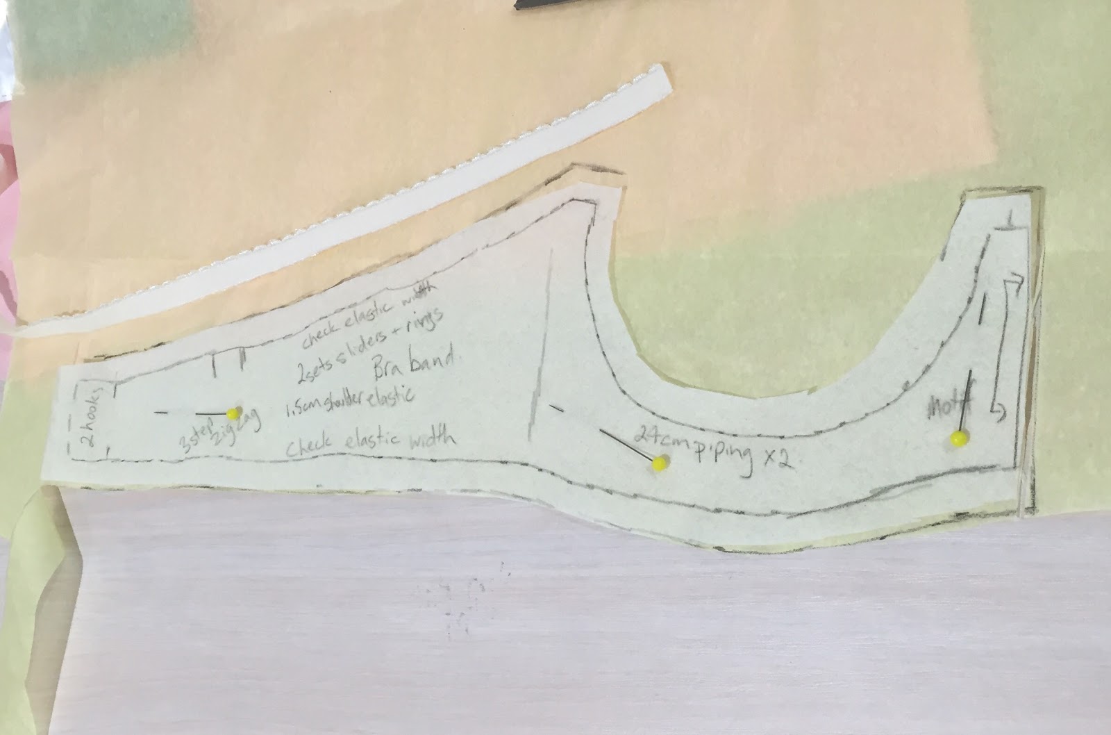 Step 1: Pin tracing paper to each bra piece and roughly draw the pattern shapes #wingedit