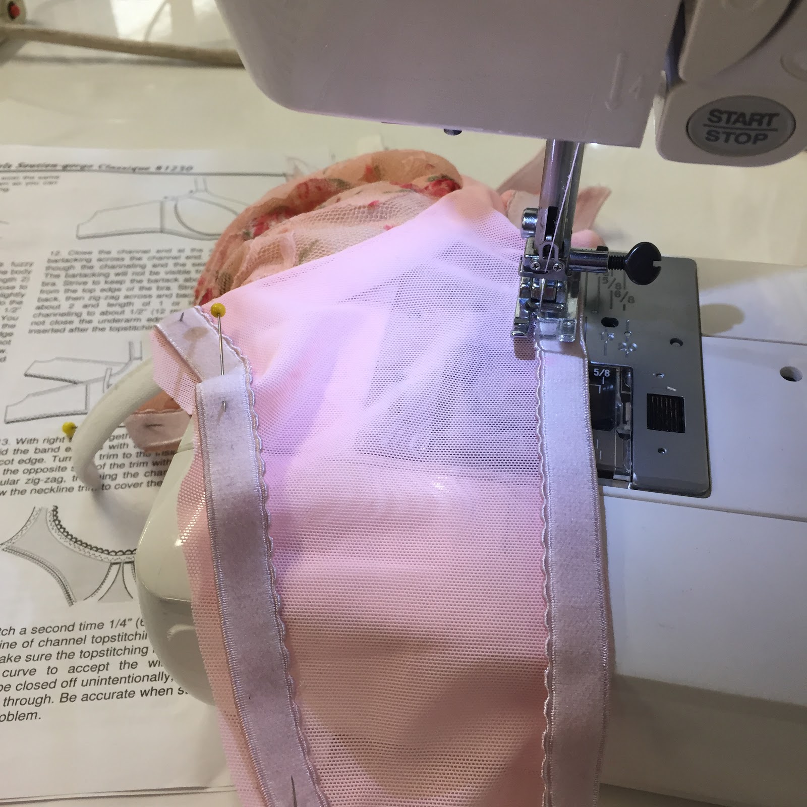 Above is where I had to figure out if the bra band matched the hook size. The plush elastic I used added width to the band so I had to adjust the back bra band to work with the hook fasteners I had on hand.