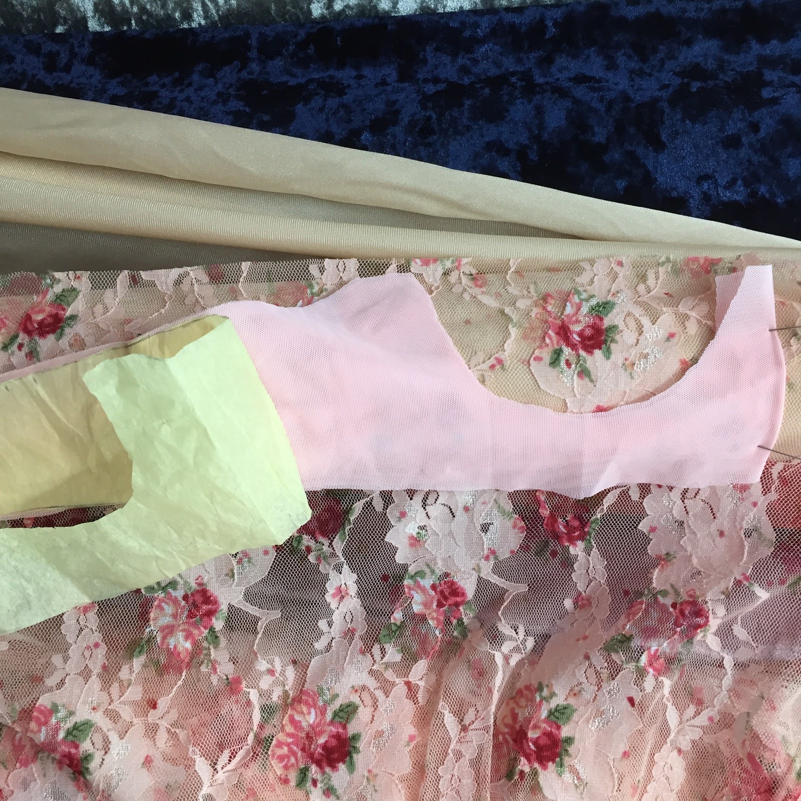 This rose lace mesh was my choice because you could see the flowers over the tricot layer.