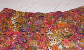 11. Stitch from the top of waist to the start of the pocket opening. Back stitch and cut thread. Start stitching again from the bottom of the pocket opening all the way down to the hem. Press the seam open. Now stitch all the way around the curve of the pocket. You can overlock or zigzag stitch the pocket curves. I used bias binding for a neater look.