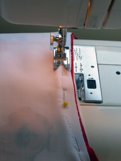 I had a thing for piping and this WIP picture shows you the sleeves with red piping. The red is not exactly the same as the poppies but it works.