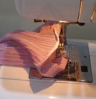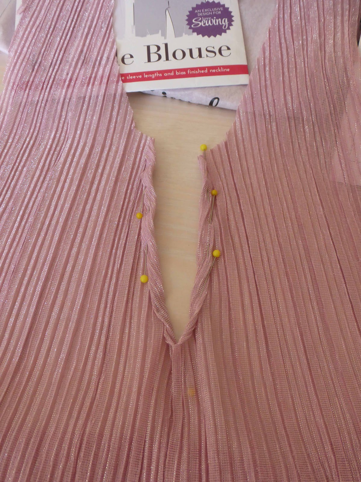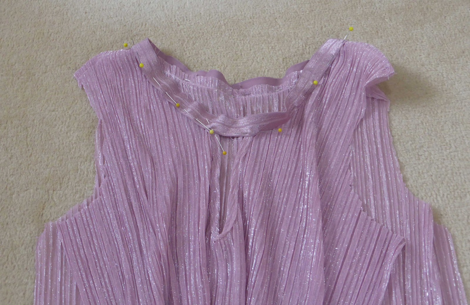 So…I found some info about sewing prepleated fabric reference on a Threads forum. Hence I chose to use fold over elastic in a similar for the neckline as an easy finish. I didn’t want to distort the fabric as I sewed it.