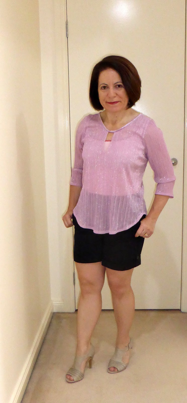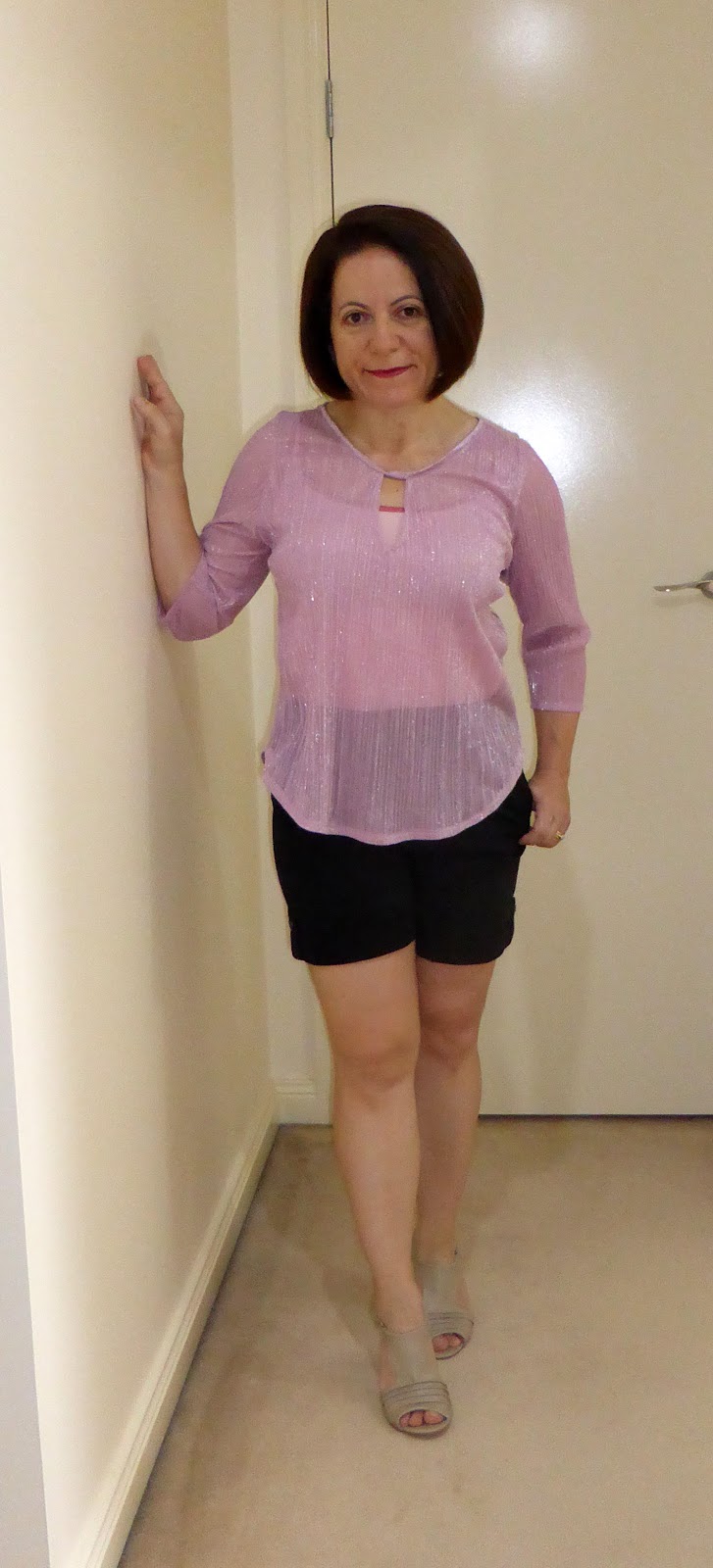 This loose style top is very wearable and the fabric gives it day or night wearing options.