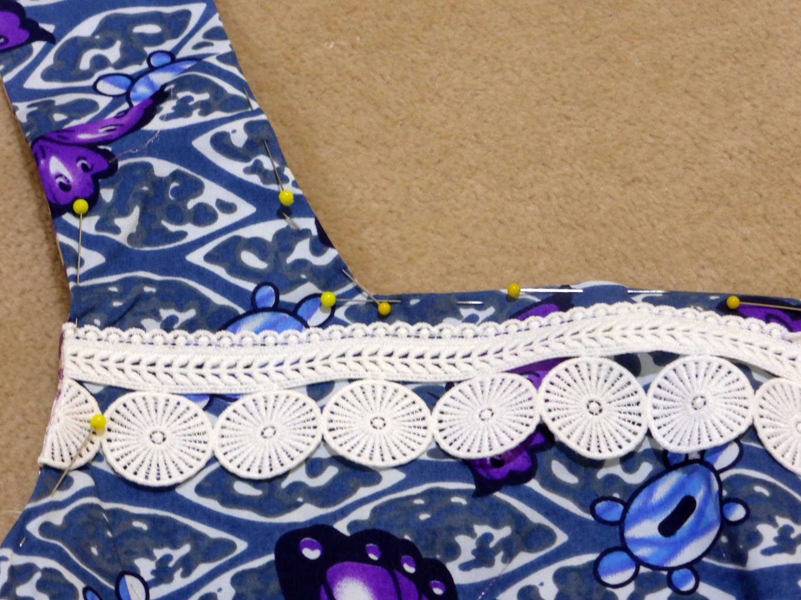 New Look 6000 has a wide round neckline. I’ve extended the shoulder seam in by 1.5cm and pinned the square on an angle so it covers my bra straps.