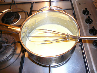 2. Take from heat and remove cinnamon stick. I take the cinnamon stick out before the custard begins to thicken. Cover with a piece of buttered paper to prevent skin forming. I use baking sheets so I have less mess. This also peels off easily. When cool, blend in eggs and vanilla essence.