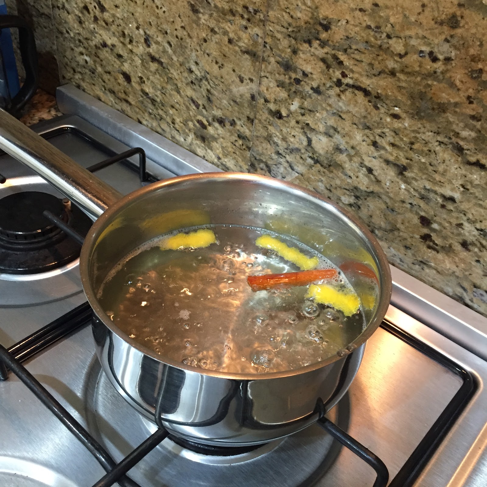 2. Add lemon rind and cinnamon bark and bring to the boil.