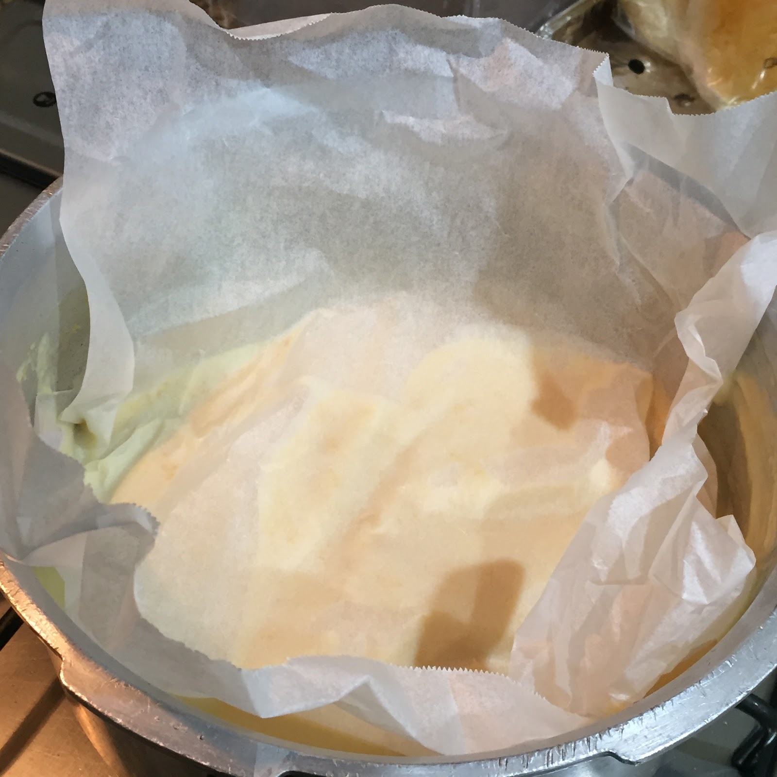 4. Remove from heat, stir in vanilla essence and cover top of custard with buttered paper to prevent a skin forming.