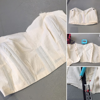 The dress pattern suggests horse hair canvas for the foundation bodice but this felt really harsh against my skin so I used calico to build the foundation bodice.