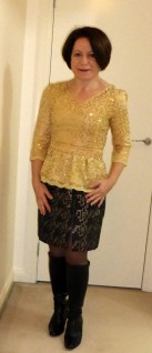 This peplum top made in 2015 uses a sequinned lace provided my Minerva Crafts UK.