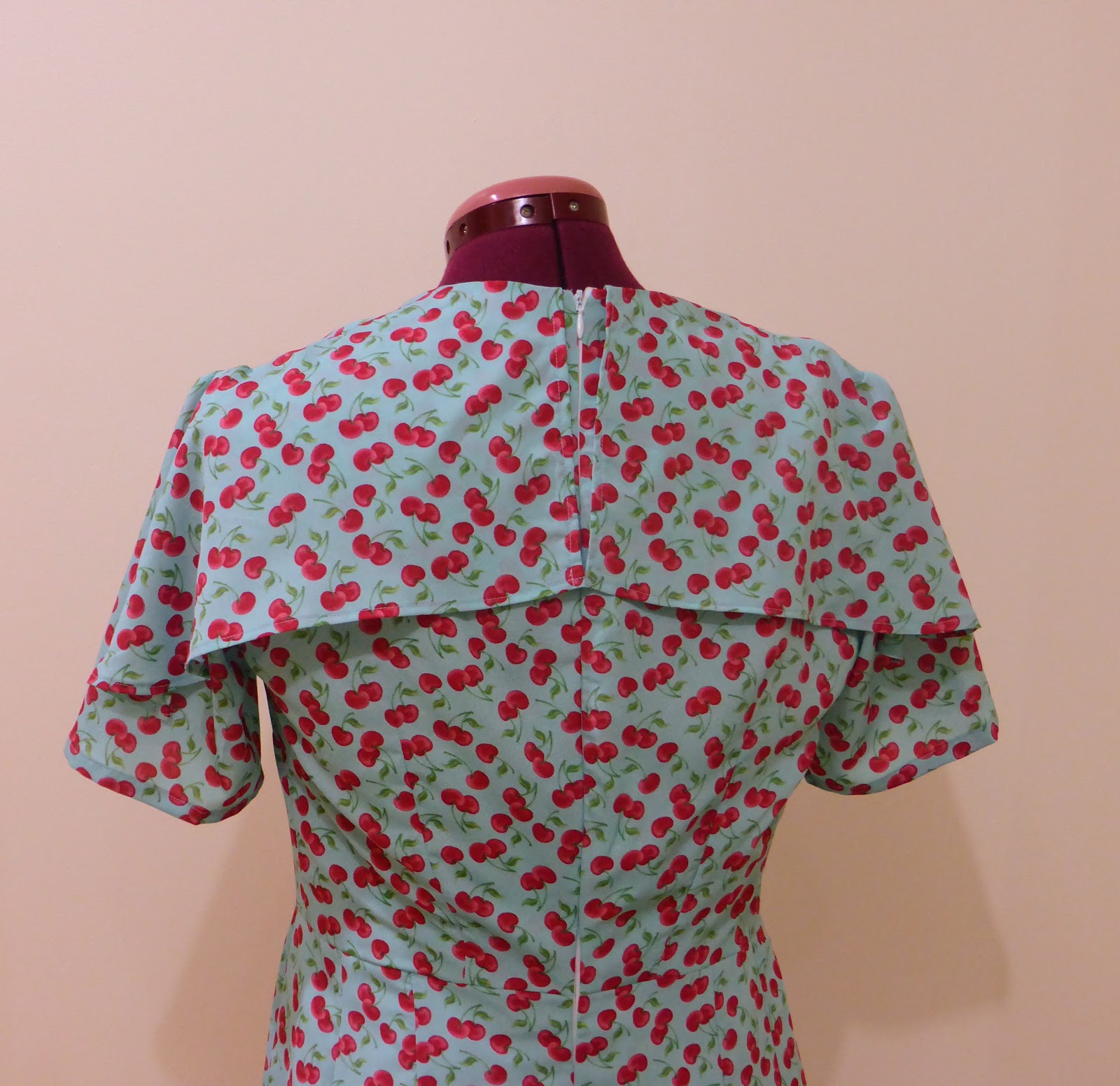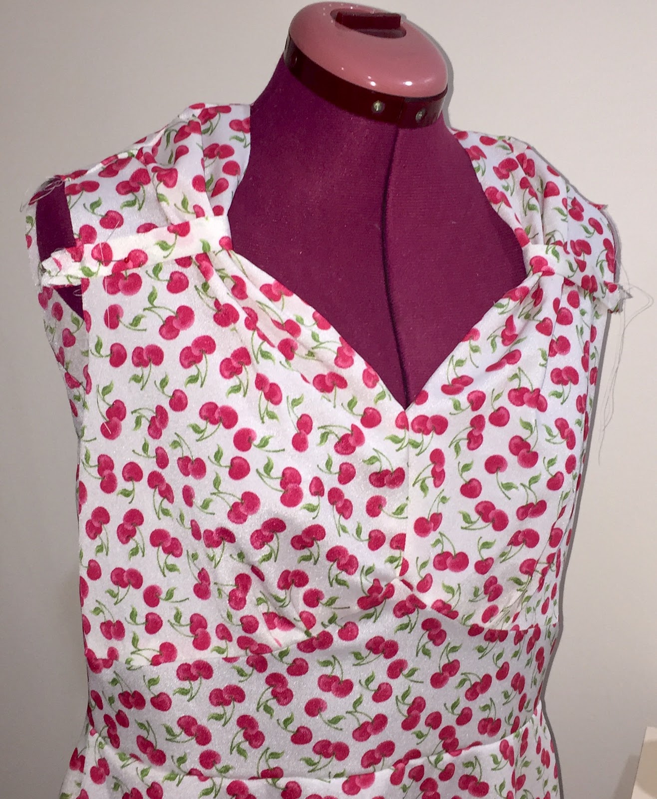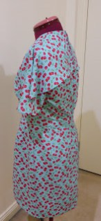 I still had time up my sleeve and decided to use the turquoise cherry print for a basic dress with an interesting neckline feature.