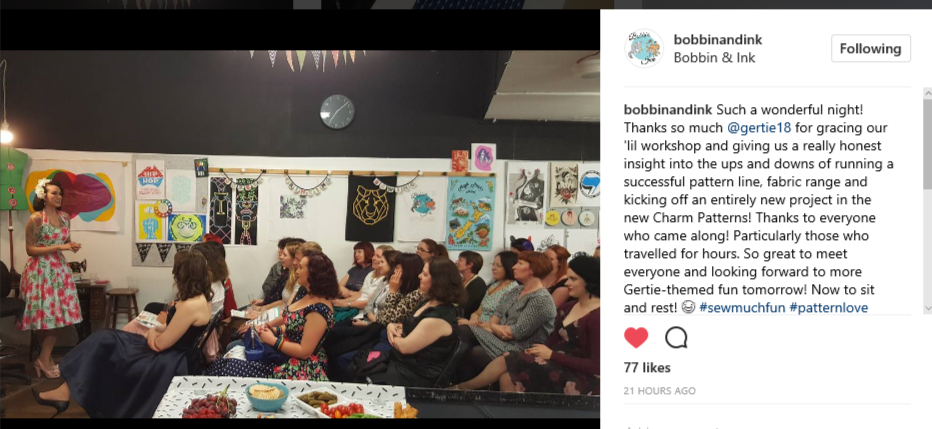On Friday night after Gertie’s whirlwind tour to Brisbane and Melbourne, we were lucky to have Gertie speak at a function hosted by Laura at Bobbin and Ink.