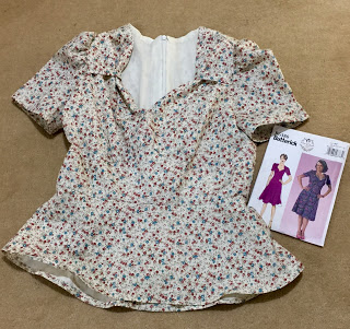 The Instagram vote determined using white cherry version for this dress. I did a bit of research online and decided to test this dress pattern as a peplum blouse.