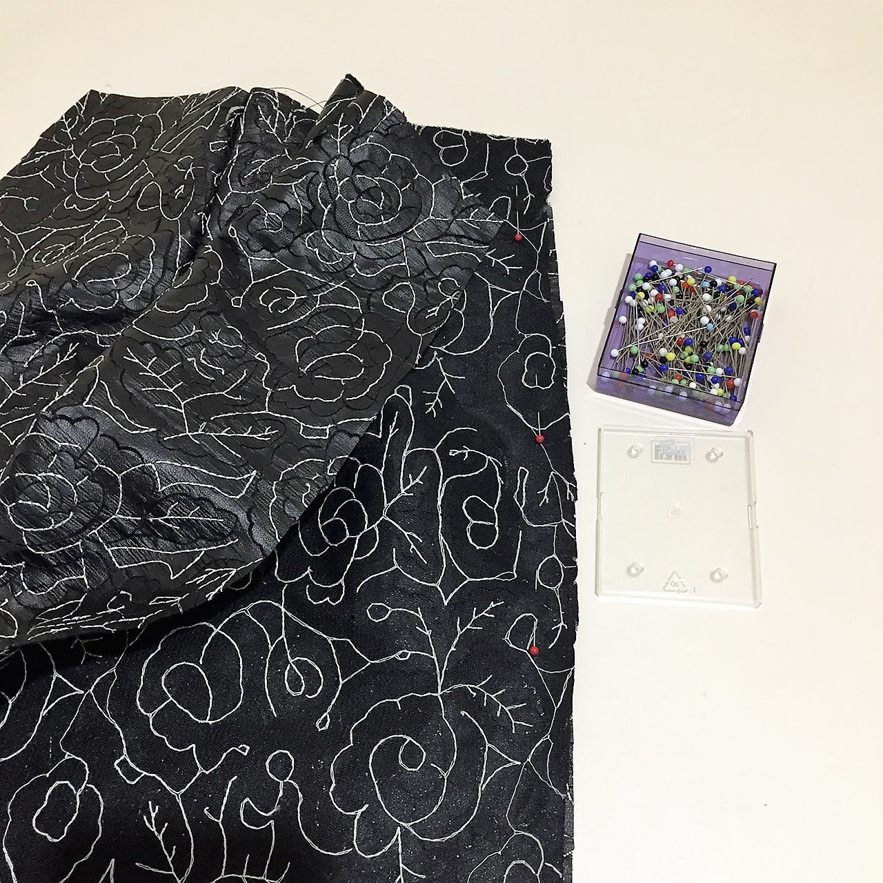 The pleather has flower motifs sewn onto a knit mesh backing. It’s really quite a flexible fabric. Minerva Crafts has a few new faux leather fabrics to choose from in an array of colours.